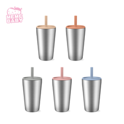 Toptan çocuk ürün toksik olmayan çevre dostu taşınabilir yeniden kullanılabilir paslanmaz çelik bardak silikon Sippy kapak ve saman